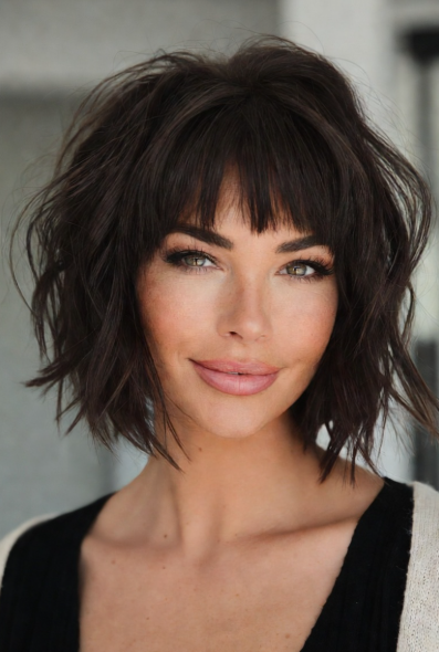 The choppy layered bob shows you can have style and practicality in one cut. Add a bit of volumizing mousse before blow-drying for lasting lift and movement. It’s especially flattering for fine hair, creating the illusion of fullness without spending extra time in front of the mirror.